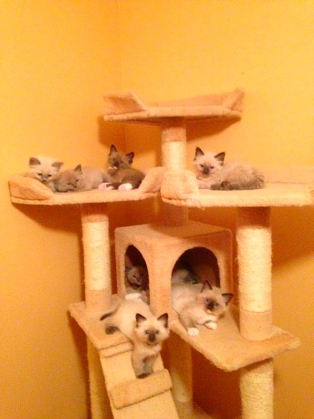 Previous litters of kittens who have been adopted.